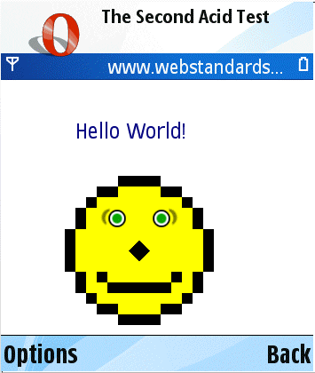 Opera Mobile 9 on Series 60 - The first mobile browser to pass the Acid 2 test (the hover effect will work on devices that have a mouse)